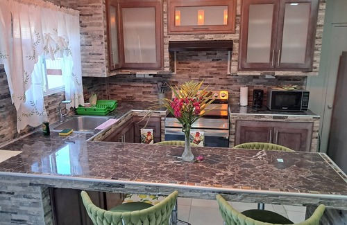 Get ready to relax in this 1-bedroom apartment in Bon Accord Tobago. This adorable space features 1 queen bed, a cozy living area, and a fully equipped kitchen. Enjoy the convenience of AC, washing machine, and WiFi during your stay. The bathroom offers a refreshing shower for guests. We'll be available to answer any questions while you stay at our place. We do offer airport transfer, island tours and bicycle rental