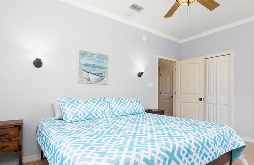 The main bedroom is very spacious featuring a king bed and a triple stacked bunkbed, with private bathroom, including double sinks and tiled walk in shower. The first guest bedroom features a queen bed and 2 sets of triple stacked bunkbeds. The second guest bedroom features a king bed. The two guest bedrooms share a bathroom with tub/shower. With its pet-friendly policy, the lodge is perfect for those who want to bring their furry friends along for the trip. *This home is pet(dog) friendly. 25 lbs. maximum. Fees and management approval apply. *