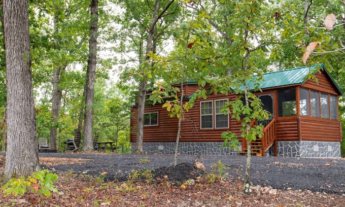 "**Welcome to The Timber Cabin**, your peaceful haven nestled in nature, offering the perfect blend of comfort and adventure. Stay connected with high-speed fiber optic WiFi and enjoy streaming on three TVs. Relax in the cozy living room with plush power recliners equipped with USB ports. The spacious screened deck invites you to dine outdoors or catch your favorite shows on the 55" UHD TV, all while taking in stunning Ozark Mountain views. Whether you're seeking relaxation or outdoor exploration, The Timber Cabin is your ideal retreat! We are pet-friendly with a current pet fee of $50 for up to two dogs for up to five days."
