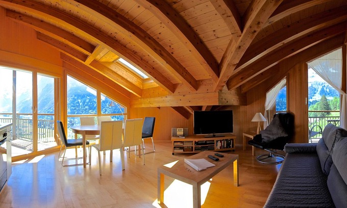 ALPHAVEN is a top floor apartment in a modern chalet-style house, which is nestled above the beautiful mountain paradise of Engelberg. The views are simply stunning, a 180 degree panorama across the entire valley with the mighty 'Titlis' and the Benedictine Monastery at the centre, arguably one of the most beautiful views in Switzerland.