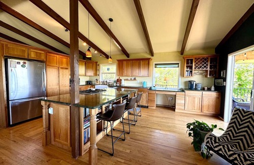 Please watch children carefully outdoors. The deck is high from the ground in some areas. There are vertical railings for safety and protection, but we wouldn't want children attempting to climb the railings. Our property is also a haven for wildlife including bobcat, coyote, bears, and deer, so young children and pets should not be left unattended.