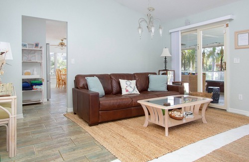 The kitchen, with convenient eat in area, and sliding doors to the lanai, is equipped for easy meal prep and everything you might need for your stay. The tropical lanai has a dining table for 6 and plenty of room to sit and relax. Step from the lanai to the caged heated in-ground swimming pool. Listen to the birds and don't forget to watch for our resident manatees in the canal! The gas grill is located on the shady side patio next to the pool. If you are beach bound, access is just 10 minutes away and we provide chairs and a cooler. The public boat launch is just 5 minutes away.
