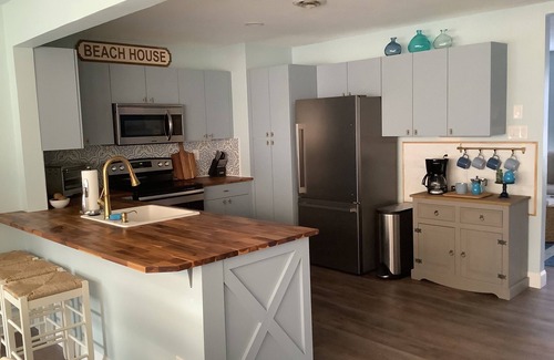A-zone boutique style vacation rental in quiet family neighborhood. We are 8 houses from the beach on beach block. You will feel right at home as you settle into the comfy coastal cottage feel with all the amenities you need to kick back and reset on beach time. Entire home NEWLY furnished 2021. Three bedrooms with Allswell and Linenspa mattresses, all outfitted with GAP HOME bedding and linens that are also provided.