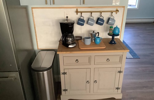 PROVIDED FOR YOUR USE: Regular & Decaf Coffee/Teas, Olive oil, condiments, basic starter supplies (TP, paper towel roll, hand soap, shampoo/body wash, kitchen sponge/dishwashing liquid/dishwasher tabs) and wooden hangers in closets.