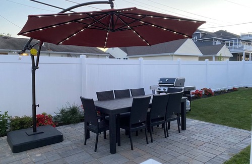 Large backyard with new outdoor enclosed shower. Paver patio with table for 8, cantilever umbrella and Weber BBQ. Lounge on Adirondack chairs or join in on family lawn games! Shady covered front patio will be your favorite spot to unwind and chill on the couches. Are you ready to relax and enjoy all that Brigantine has to offer, we hope that our Posto Al Sole (place in the sun) becomes your family's favorite summer getaway!