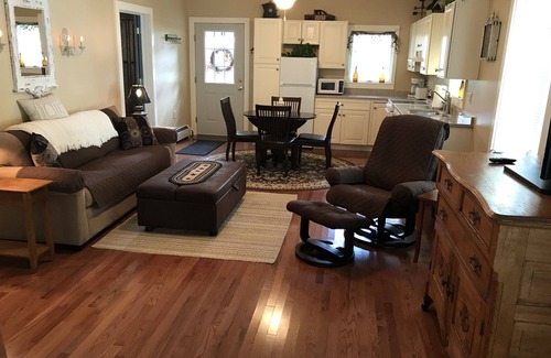 Breezy Point is all located on the 1st floor. In addition to a private side entrance, french doors lead out to the covered verandah. Enjoy dining outside overlooking the lake or gathering around a campfire under the stars. High ceilings, modern kitchen and furnishings all give this an inviting ambiance. The carefully chosen décor creates an inviting ambiance.