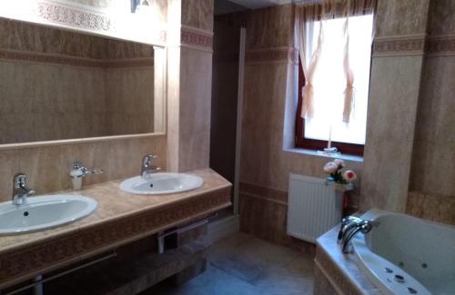 Featuring a garden, Brezno 2 izbovy Apartman Sabi offers accommodations in Brezno. This apartment provides free private parking, a shared kitchen, and free Wifi. The property features a children's playground and outdoor furniture. Leading onto a patio with inner courtyard views, the spacious apartment consists of 2 bedrooms. Providing a terrace with garden views, this apartment also provides guests with a satellite flat-screen TV, a well-equipped kitchen with a dishwasher, an oven, and a microwave, as well as 1 bathroom with a walk-in shower and slippers. There's also a seating area and a fireplace. If you like to discover the area, skiing, cycling and hiking are possible in the surroundings and the apartment can arrange a bicycle rental service. Chopok mountain is 17 miles from Brezno 2 izbovy Apartman Sabi, while Muran is 26 miles away. Poprad-Tatry Airport is 48 miles from the property.