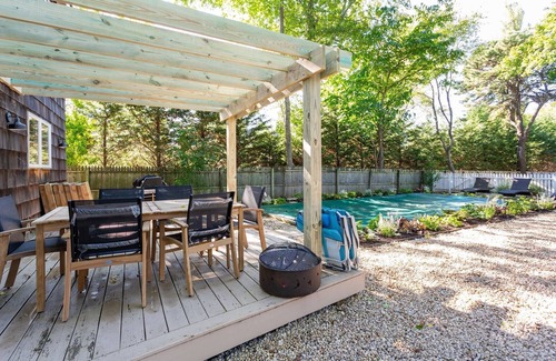 Bridgehampton, The Hamptons NY. Quintessential Cedar Shingle Hampton Home. Close to Town, 3 bedrooms, 3 baths, Nautical Themed Home. Completely furnished, gourmet kitchen & heated inground pool. Bike, beach chairs on property. Available year round. Gas fire place, SMART TV's, SMART THERMOSTATS, new heating and a/c system installed August 2022. House is completely furnished, linens, beach towels, hand towels, bath towels, laundry on 2nd floor, hardwood flooring, stainless steel kitchen appliances, true open concept, lots of natural light, private setting, games for children, board games for adults, wine fridge, lots of space, comfy furniture, green tea beds, freshly painted interior, basement with lots of storage, adult bikes available, much much more !!!! The WIFI, sanitation, electricity, gas, water, landscaping and pool expenses ARE INCLUDED in the nightly fee. Valid rental permit included