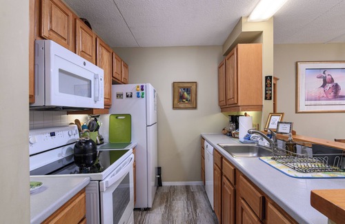 The bedroom features a comfortable queen bed, while the full bathroom offers all the essentials to refresh after a day outdoors. With thoughtful touches throughout, this condo makes relaxing between adventures effortless.
