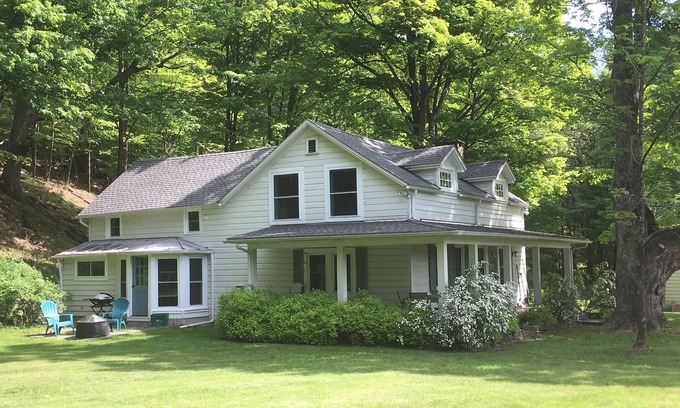 Named after Brigadoon, an enchanted place where life is simpler and easier, untouched by the worries of the modern world. You'll understand why when you stay in my peaceful, serene, fully renovated 1850s farmhouse, which is set far back from the main road leading to and from Woodstock, NY. The best of all worlds, it's about 2 minutes from the center of town, and right on the bus route from NYC. But sitting on the front porch overlooking a giant secluded meadow, you can enjoy total privacy from noise and neighbors, and have a complete relaxing country experience. It's across the street from the Dixon Roadside trendy restaurant and bar, a 5-minute walk to gourmet streamside dining at the Bear Cantina, and a 5-minute walk to Sunfrost Farms vegetable market and The Cub Market, where you can also enjoy breakfast and The New York Times. You can walk to the Bear Complex to enjoy Nancy's Ice Cream, world-class musicians at the famous Bearsville Theatre, and jazz brunches outside on Sundays. This house is perfect for skiers (Hunter, Belleayre, and Windham nearby), festival goers (Film Festival, Bookfest, Comedy Festival, Luthiers, Festival of the Voice, etc.), music lovers or recording groups, and families looking for a charming Woodstock getaway or couples seeking a total romantic country experience. The house is warm in winter, cool in summer, and full of light and open space. It's uncluttered, classic wood and white, and supremely serene. Visitors often spot deer, the occasional black bear, foxes, turkeys, and hawks in the nearby woods and meadow while sipping a cocktail at dusk on the front porch. Amenities include Weber gas bbq grill, outdoor fireplace for marshmallow roasting, a bluestone patio with outdoor dining, a giant clawfoot bathtub, and washer/dryer. The fully equipped kitchen has everything you could want, from a pizza stone to a cake decorating kit, Nespresso machine to a Cuisineart. There is a gas fireplace, central air-conditioning, business center with printer, free wifi, cable TV with Showtime and HBO, indoor games, outdoor lawn games, and a sprinkler for little ones' summer fun. If my house doesn't have it, just ask and I'll get it for you.