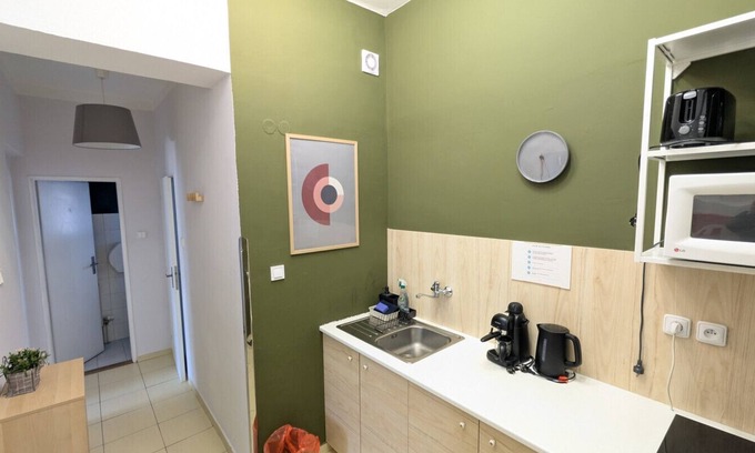 Zizkov is a vibrant neighborhood with plenty of bars, restaurants, and local attractions, including the TV Tower and Vitkov Hill. Next door to the apartment is a Tesco Express, making it easy to grab essentials. The tram stop is just a 5-minute walk away, and you can also walk to the city center in about 20 minutes.