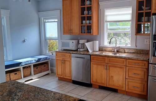 This apartment is only two blocks from the July 4th Parade route and only a few hundred feet from the Town Common where there are tennis/pickleball courts, basketball courts, jungle gyms for kids, a beautiful gazebo and plenty of benches for just admiring the fresh open air and beautiful surroundings. You can take a very short walk to Bristol Harbor where you’ll find many restaurants, shops, the local library, banks, breakfast places, pubs, and parks as well as the ferry to Prudence Island. A short walk down Wood Street you’ll find several very interesting restaurants like Brick, Pivotal Brewing Company, Sakuratani, Common Pub, and our favorite, Pomodoro Italian Kitchen (just three doors away!). A short walk downtown brings you to antique shops, Linden Place Museum, the public library, Independence Park as well as several small parks, the harbor with many beautiful boats, and, during the summer months, the SeaStreak (fast) ferry to Newport and/or Providence.