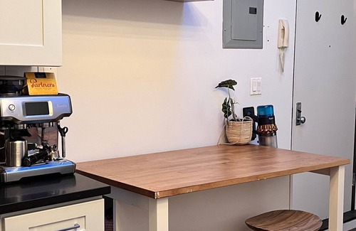 The apartment has beautiful high ceilings (16'' ft) and original wood floors with all the charm from old school Greenpoint. There is abundant natural light that fills both rooms and the living room/kitchen area thanks to a huge skylight. The kitchen is well equipped (dishwasher, oven, rice cooker, water boiler, non-toxic pans, Breville espresso maker, glassware, dutch pan etc) with modern appliances and ample counter space. We love to cook so you'll find in our home anything you need for breakfast and cozy diners!