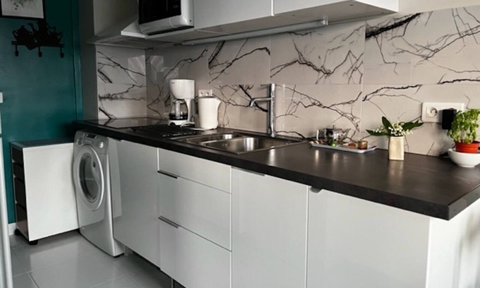 - The studio has been completely renovated, with new double-glass windows, a new floor in the kitchen area, and a new modern and efficient kitchen.