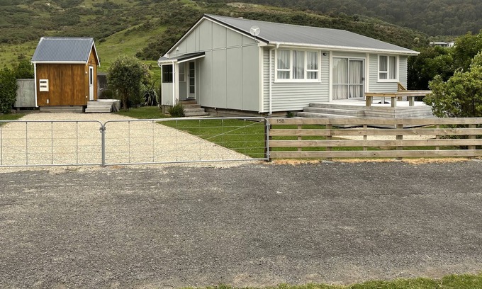 3 bed , 1 bath , open plan living dining with modern luxuries . Added extra of a outhouse toilet, shower great for washing of the sand after a swim at the many beaches Mahia has to offer