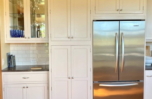 This is our own home which we rent for a few weeks in the summer. Guests will have the entire house, patio, outdoor kitchen and trellised eating space. We have moved most of our personal belongings, but artwork, books, and some items in closets will remain. All countertops will be clear, and there will be empty cabinets, closets and drawers for guests.