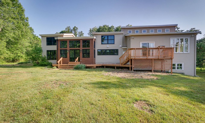 Immerse yourself in the beauty of nature when you book this vacation rental in Bluemont! This 5-bedroom, 4.5-bathroom home is the perfect place to bring the family. The property is located in private woods and features an equipped kitchen to prepare home-cooked meals, a porch swing to relax outside, and a fire pit to enjoy at night. Take a drive to the local farmers market for some fresh produce, enjoy a tasting at Bluemont Vineyard, or hike through Raven Rocks Trailhead!