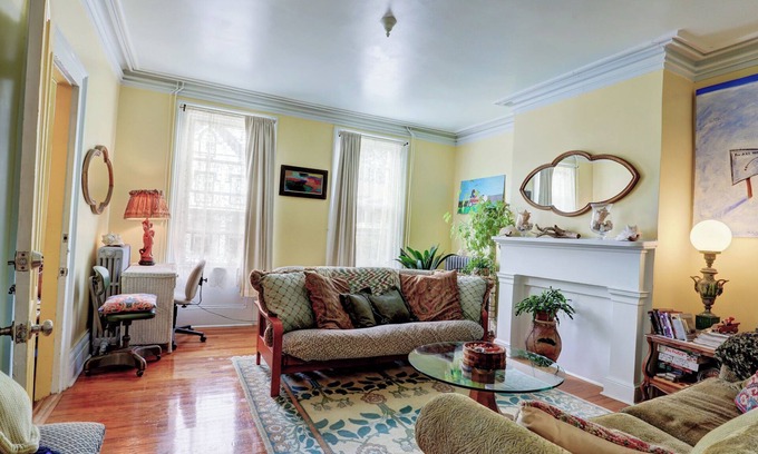 CHARMING, SPACIOUS, ART-FILLED 1ST FLOOR OF A FEDERAL-PERIOD HOME IN THE CENTER OF HUDSON. WALK TO THE MIDDLE OF WARREN STREET IN UNDER A MINUTE. WI-FI, FULLY EQUIPPED KITCHEN & BUDDHA GARDEN WITH PROPANE BBQ.