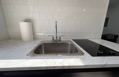 Enjoy the kitchen equipped with sink, electric cooktop, mini-fridge, microwave, and more.