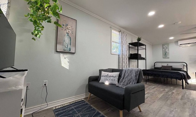 This backyard bungalow/guest house is an open concept bedroom/living room full of natural light & large windows!