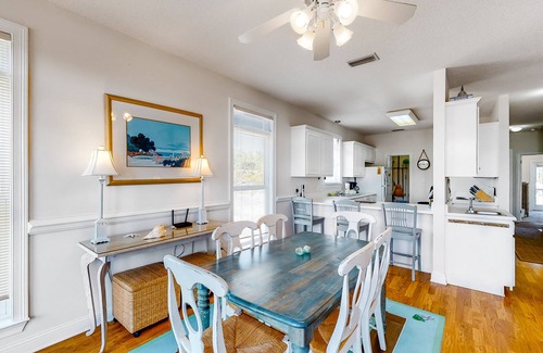 Welcome to your vacation home close to everything! This home includes two halves of a duplex, perfect for a larger family or group. Each side features its own full kitchen with full-size appliances, as well as its own private washer/dryer set. Rinse off the sand in the outdoor shower, then come inside to cool off in the central air conditioning (on either side, naturally). Enjoy taking in the fresh air from the furnished deck - enjoy a distant ocean view from the front porch!