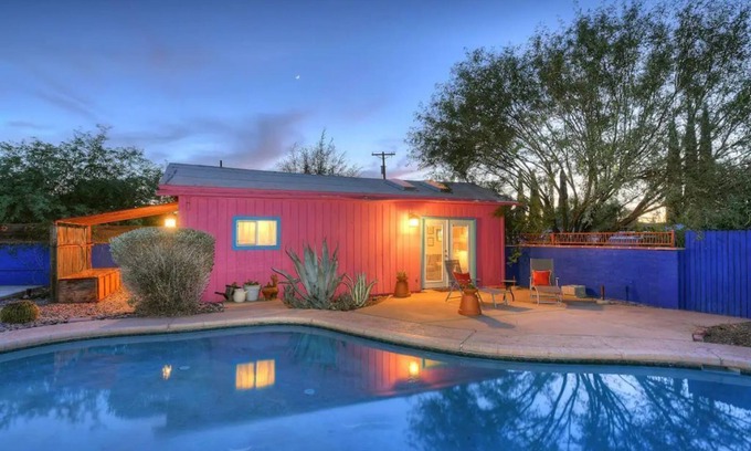 Our sunny, pool-side guest house with private entrance is ready for you! A comfy Murphy bed folds up for extra space. Futon bed & floor mattress for extra guests. Plenty of cupboard and closet space to make yourself at home. Enjoy the sun lounging by the pool or ask us for a outdoor cafe recommendation. We are located in a quite neighborhood in Central Tucson which is close to basically everything: hikes, bike trails, bars, restaurants, downtown, U of AZ all within 15-20 mins or less.
