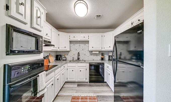 Your peaceful getaway awaits at this bright 3-bedroom, 2-bathroom vacation rental in Graford, Texas. Curl up indoors with your four-legged friend, or sizzle some tasty burgers and hot dogs on the grill. For more outdoor fun, make a splash at Sandy Beach! After your adventures along Possum Kingdom Lake, dine at a nearby restaurant and gather around the home's wood-burning fire pit for s'mores. This property also features 2 flat-screen TVs, perfect for cozy movie nights!