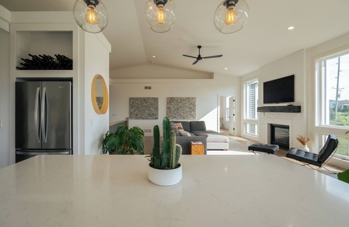 Giant windows and very new construction make this home feel airy and inviting. Located in Sun Prairie, this fabulous house boasts 3 bedrooms - 1 king bed and 2 queen beds. With 3 bathrooms featuring showers, guests will feel right at home. 2 gas fireplaces can be flipped on in an instant. The kitchen is stocked with all amenities for cooking a fantastic meal. The additional office space with a full bed provides extra comfort.