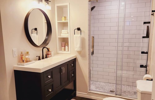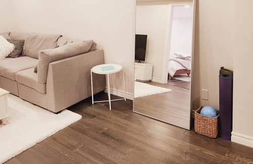 Welcome to our newly finished, spacious one-bedroom suite, nestled in a prime location of Orillia! Ideal for ski enthusiasts, nature, shopping and/or spa lovers. This lower-level gem offers comfort and convenience. Steps from Starbucks, Dining, Fitness & Yoga Studios and just a short drive to ski hills, Vetta Spa, Hiking trails, downtown & Lakehead U. The tastefully designed interior, modern amenities, and easy access to local attractions will make this 900 sq ft Suite a cozy haven you'll want to return to! Please note - there is a shared entrance to your fully self contained Suite. Coffee & Tea provided plus a bar fridge for drinks, ice and snacks :) We look forward to hosting you!