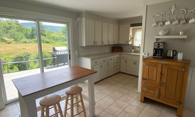Nestled in between the mountains of Acadia National Park and the coast of Mount Desert Island sits the Misty Mountain Retreat. Our spacious three bedroom, one and a half bath farmhouse includes a large eat-in kitchen plus dining room that accommodates 6 comfortably, a bright open living room, and a sunroom with comfortable seating. Enjoy views of Bernard Mountain from our back porch.