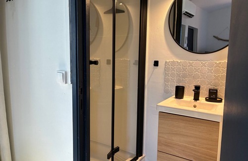 - a lounge area with a sofa bed (140x200) offering comfortable sleeping accommodation for one or two people. Thanks to its view over the rooftops of Toulouse, you will enjoy a charming and authentic setting, conducive to relaxation;
