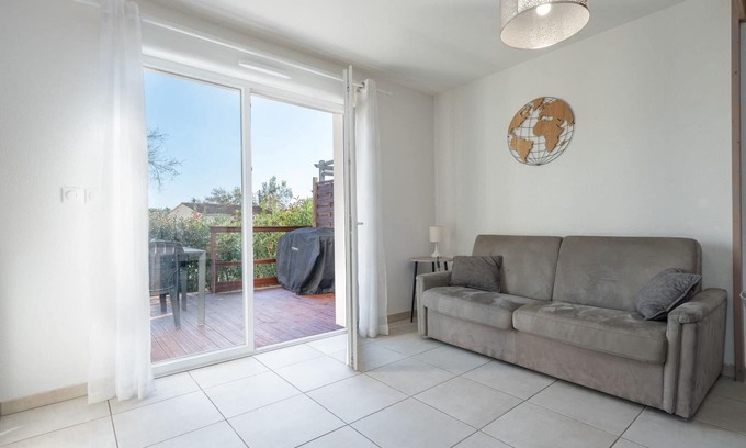 Located in the heart of Sérignan’s family-friendly coastal zone, this cozy 55 m² villa offers a fully equipped retreat for up to 7 guests. With 2 bedrooms and a welcoming layout, it’s just 450 meters from both the sandy beach and local restaurants, and only 1 km from the nearest supermarket—perfect for a relaxed seaside holiday. The villa features a private garden, outdoor furniture, a sunny terrace, and a barbecue for alfresco dining. Guests enjoy modern comforts like air conditioning, electric heating, a TV, hair dryer, and iron. A communal heated swimming pool and open-air parking in the same building add to the convenience and enjoyment of your stay. Inside, the open-plan electric kitchen includes a refrigerator, microwave, dishwasher, coffee machine, toaster, kettle, and all essential utensils. Situated at Avenue des Pattes Rouges, Apartment 25, this ground-floor villa blends comfort, location, and charm—your ideal base for exploring the beauty of Languedoc-Roussillon.