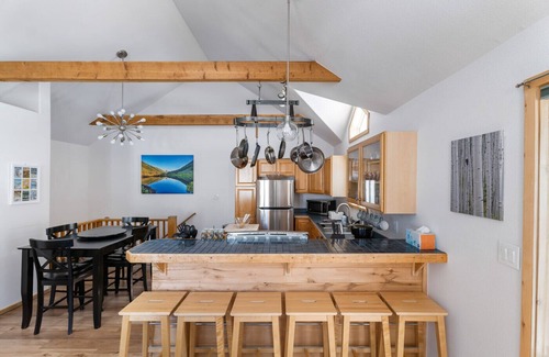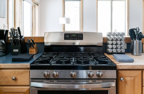 Kitchen - The Kitchen is fully equipped. As frequent travellers ourselves, we know how disappointing it can be to cook in a kitchen that isn't fully equipped and we have put thought and effort into making sure you will have what you need - including the 20 spice rack, nice pans, mixing bowls, and a slow cooker. The kitchen has been updated with all new stainless steel appliances including a gas range for the discerning chef. You'll enjoy cooking in this mountain getaway for breakfasts before a big day on the mountain and on the nights you aren't enjoying the fantastic offerings in town.