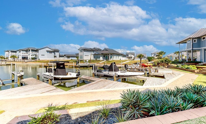 Located at The Reserve at St. Charles Bay, this gorgeous coastal villa is part of a beautifully landscaped gated community. Goose Island State Park and the bay are in close proximity, so you’ll feel surrounded by nature. Your private patio and balcony and perfect places to enjoy the water views. Amenities for your enjoyment include a 2.1-mile community boardwalk, a firepit, a fishing dock, a hammock park with an outdoor kitchen and gas grills, a bayfront pool, a bayfront pier, and kayaks (must remain at the pier). Two miles north of your villa is the centuries-old Big Tree, while Rockport Beach is an 11-mile drive away.