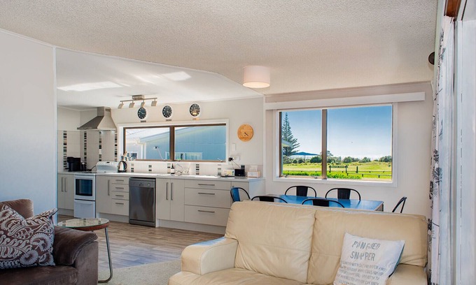 Best-rates for the Waihi Beach house starts from $286 per night with includes Wellness Facilities, Air Conditioner, Parking, Ocean View, Sports/Activities, Bedding/Linens, Laundry, Balcony/Terrace, Entertainment, Child Friendly, Fireplace/Heating, TV, Oceanfront, Security/Safety, Kitchen, Pet Friendly, View, Internet StayAndPlay offers fully equipped golf villas, golf hotels, golf resorts, luxury golf cabins, and exclusive golf retreats, making it easier than ever to find your perfect golf escape — ideal for families, peaceful getaways, or pet-friendly retreats with the whole crew.