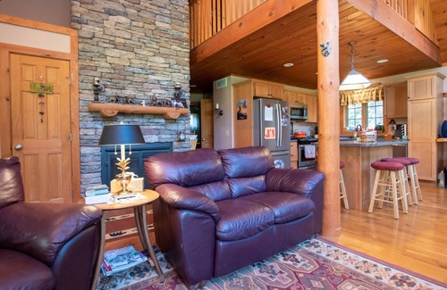 Upstairs, a loft with twin size bed and additional full bath with step in shower can be found. Knotty pine ceilings continue to accent each room.