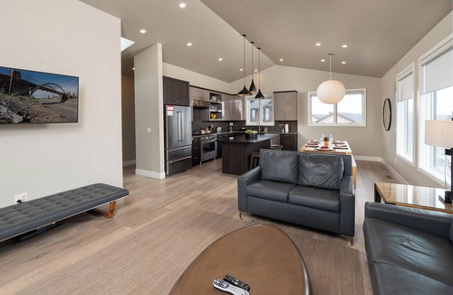 Discover Tetherowβs 4-bedroom plus studio contemporary homes in the Trailhead neighborhood. Features of the Storm King include reverse living (living room and kitchen upstairs), a well-equipped kitchen, a two-car garage with separate studio unit, a deck and patio with a private hot tub, BBQ, and fire pit. You can also find forest trails just down the street.. Enjoy the amenities of Tetherow Resort and the proximity to all the beauty Bend has to offer, 10 minutes to downtown, 20 minutes to the Mt. Bachelor, inspiration in every direction.