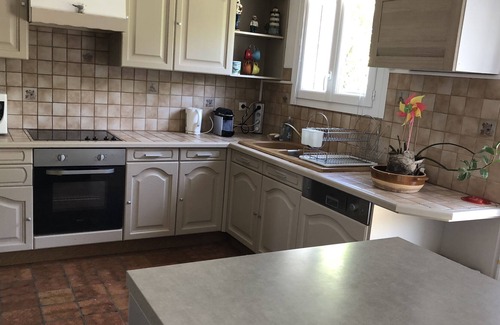 NICE HOME WITH A CLOSED GROUND OF 500M2 ON TWO LEVELS COMPOSED IN RCH OF A ENTRANCE, LIVING ROOM, STAY AND KITCHEN EQUIPPED INDEPENDENT OVERLOOKING GARDEN AND TERRACE, 1 ROOM, 1 ROOM OF WATER, 1WC, 5 ROOMS ON The FLOOR , BATHROOM, TOILET, ACCESS IN GROUND AND GARAGE, DOOR ELECTRIC GARAGE ,, - LONG STAY POSSIBLE ON DEMAND PRICE DEGRESSIVE ACCORDING TO THE NUMBER OF PEOPLE OCCUPANT THE HOME
