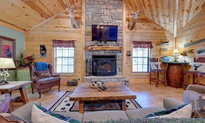 Experience a unique combination of rustic relaxation and lake luxury in this 3-bedroom, 2-bathroom vacation rental cabin in Broken Bow. Located mere minutes from the lake and offering a hot tub, furnished deck, foosball table, and fire pit, this 2,200-square-foot home for up to 14 is truly one-of-a-kind. Whether you spend your days fishing in Mountain Fork River, luxuriating in the hot tub, or waterskiing on Broken Bow Lake, you're sure to feel right at home in this Sooner State sanctuary.