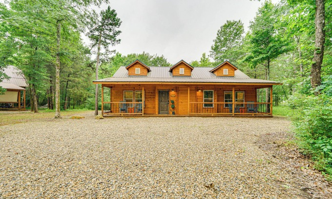 Prepare for the ultimate outdoor adventure when you stay at this Broken Bow cabin! This 2-bedroom, 2-bath vacation rental perfectly blends the rustic charm of a remote cottage with the modern comforts of home. Outside, you'll find a covered dining area, a private hot tub, a cozy fire pit, and serene forest views. Ready to explore? Enjoy waterfront activities along Broken Bow Lake, hike through the scenic Beavers Bend State Park, and taste-test local libations at one of the surrounding wineries.