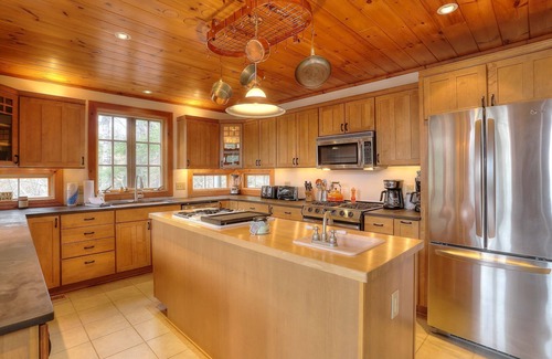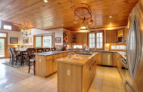 FAQs: This property has a hot tub available along with a private sauna located off of the master suite. There is also a gas grill/smoker included for use mid-May through mid-October. This property has a boat dock with kayak launch and stairs into the beautiful Dodge pond. Two kayaks and a swim platform! Life vests can be found in the shed. There is a ski rack on the side of the house and boot warmers for guest use.