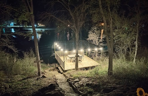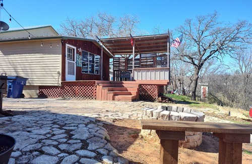 Come and stay at Brothers Cove Lake House on Lake Graham. Offering a lake front cabin with covered porches, dock & a fire pit. The Back yard has three separate covered porches for relaxing in the shade. Conveniently located off FM 3003, just a few minutes from Graham, Texas. The cabin sits above the lake, with a steps down to the dock and water. It has an authentic rustic charm with all the modern conveniences you will need regardless of season. It's a perfect retreat for a couple or small family.
