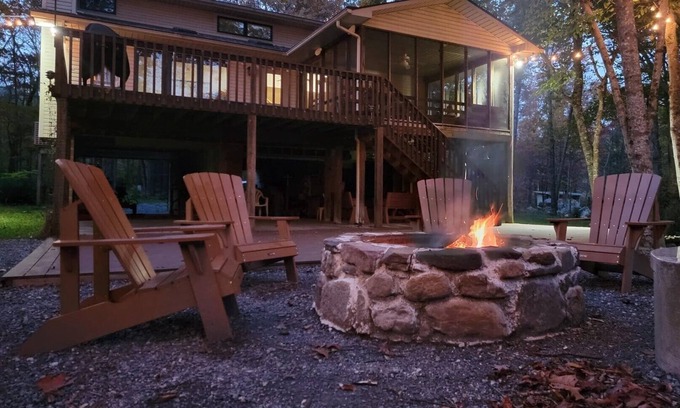 Best-rates for the Eagle Rock house starts from $287 per night with includes Pet Friendly, Bedding/Linens, Wellness Facilities, Fireplace/Heating, Kitchen, Sports/Activities, Entertainment, Barbecue/Outdoor Cooking, Air Conditioner, Security/Safety, Child Friendly, Internet, Parking, TV, Balcony/Terrace, Laundry StayAndPlay offers fully equipped golf villas, golf hotels, golf resorts, luxury golf cabins, and exclusive golf retreats, making it easier than ever to find your perfect golf escape — ideal for families, peaceful getaways, or pet-friendly retreats with the whole crew.