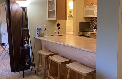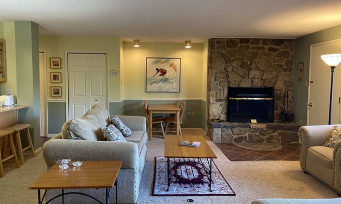 This unit is on the bottom floor of Aspen East Condominium facing the 10th hole of the golf course. It’s right on the ski hill and near the tubing and ice skating. You can walk down to the Copper Kettle or the grill for food and drinks. It’s right in the center of things! The unit is great for dealing with biking or ski equipment - it has easy no-step access for those that don’t want to deal with the upper floors. The unit has a king bed and a pull out full. There is a pool on the property that is open during summer hours. Roku available for your streaming preferences.