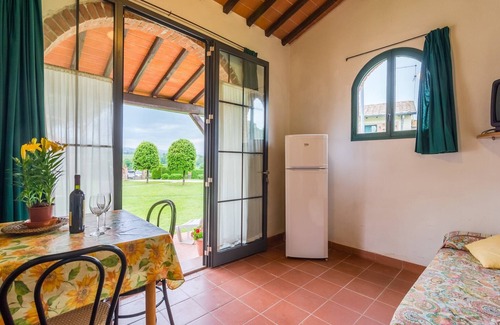 Escape to the green heart of Tuscany in this cozy farmhouse in Bucine, perfect for small families or a group of three. With 1 bedroom, a single sofa bed in the living area, and a private front terrace overlooking lush gardens, this charming retreat invites you to unwind and enjoy a peaceful countryside getaway.
