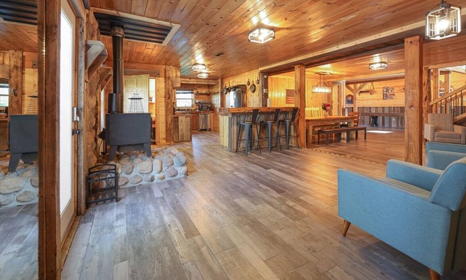 Welcome to Buckets Lodge, the ultimate getaway for thrill-seekers and group gatherings! Perfect for family reunions, team-building retreats, or adventurous escapes this action-packed lodge offers endless excitement. Enjoy a 16-person theater and a bar area with seating for 20. Ignite some friendly competition at the indoor basketball court, ping pong or shuffle puck. Cool off in the pool or lounge on the sundeck (May through September). With 6 spacious bedrooms and 3 bathrooms, Buckets Lodge is your perfect escape for making memories that last a lifetime!