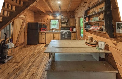 Welcome to Buckeye Loft: This budget-conscious and pet-friendly space can sleep 4 adults/children and is located on a trail to the Hocking River; just a short drive to all Hocking Hills parks and activities. It's located on the same lane/land with another 4 person cabin (Liberty Belle) and a 12 person lodge (Trails End Lodge). Often these three spaces are booked all together for family reunions (hosting up to 20 guests).