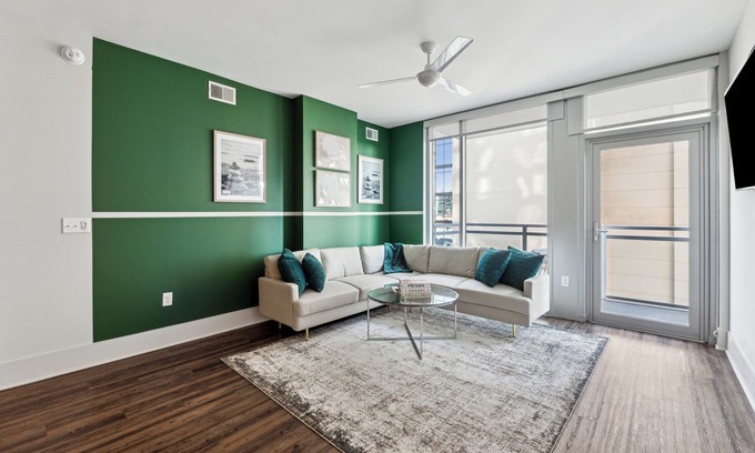 Stay in the heart of Buckhead! This modern high-rise offers a private balcony, resort-style pool, gym, and rooftop lounge with stunning views. Walk to Buckhead Village, top restaurants, and shopping. Minutes from Lenox Square, Piedmont Park, Mercedes-Benz Stadium, and the airport. Enjoy a fully equipped kitchen, in-unit laundry, Smart TVs, and fast WiFi. Secure parking available. Book now for an unforgettable Atlanta stay!