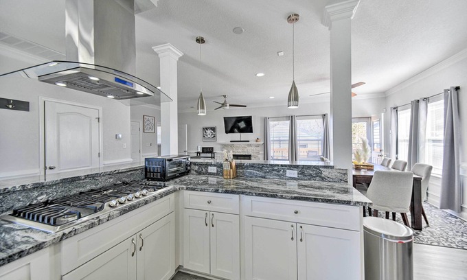 As you settle into this 4-bedroom, 2.5-bathroom rental, you'll find a living room, a fireplace, air conditioning, and a ceiling fan. Enjoy the free WiFi and TV. Prepare a home-cooked meal in the kitchen, complete with an oven, a stovetop, and a dishwasher, as well as an ice maker, a microwave, and cookware. Other amenities include bed sheets, an ironing board, and heating.