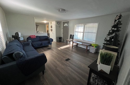 Hello🤗, experience a comfortable stay in our newly renovated mobile home, featuring a spacious front lawn and privacy, along with a back screen porch for your enjoyment. Located in Needville/Guy, we are just a 30-minute drive from Sugar Land and 20 minutes from Brazos Bend State Park and George Ranch Historical Park. Enjoy the convenience of having The Jay's Cafe (great food & known to make the best pie in town!) and Shell gas station nearby. We offer complimentary WiFi. We guarantee that every room is completely sanitized and cleaned after each guest's stay to provide a comfortable and hygienic environment.